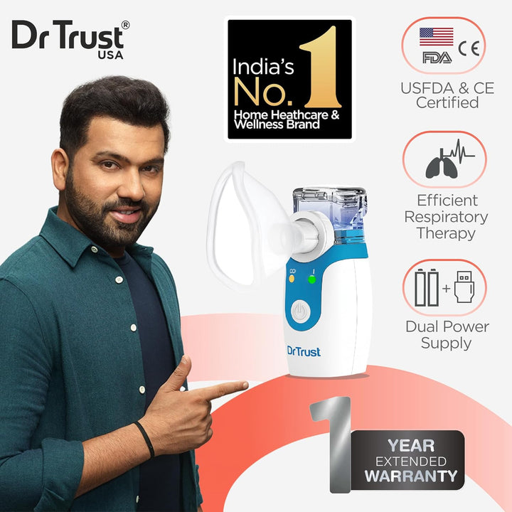 Dr Trust Portable Ultrasonic Mesh Nebulizer Machine Cool Mist Inhaler for Children and Adults (White)