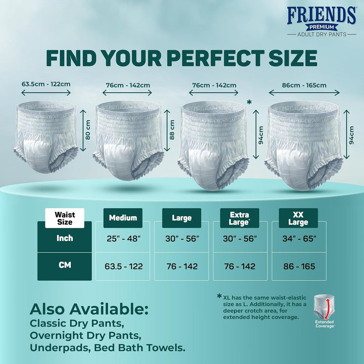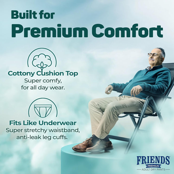 Ideal for active individuals and caregivers, Friends Premium Adult Diaper Pants combine hygiene, comfort, and convenience with every wear.