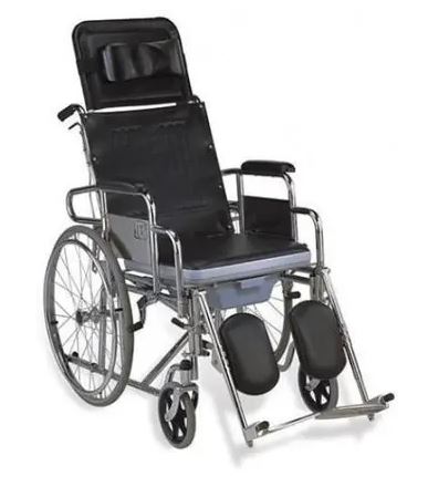 Designed for versatility, it includes a high reclining backrest, detachable armrests, and elevating footrests, allowing users to customize support during long hours of use. The hammock-style PVC seat and puncture-proof tyres provide both comfort and low maintenance, while lever-type brakes enhance safety during stops.
