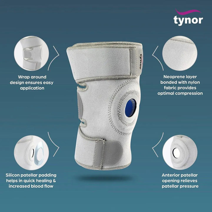 An anterior wrap-around design with a UBL fabric layer ensures customized compression, better grip, and easy application. Neoprene sandwiched in nylon fabric has 4 way stretch, strong compression, excellent durability with appealing aesthetics. Thicker fabric ensures therapeutic heat, increased blood circulation,& faster healing.
