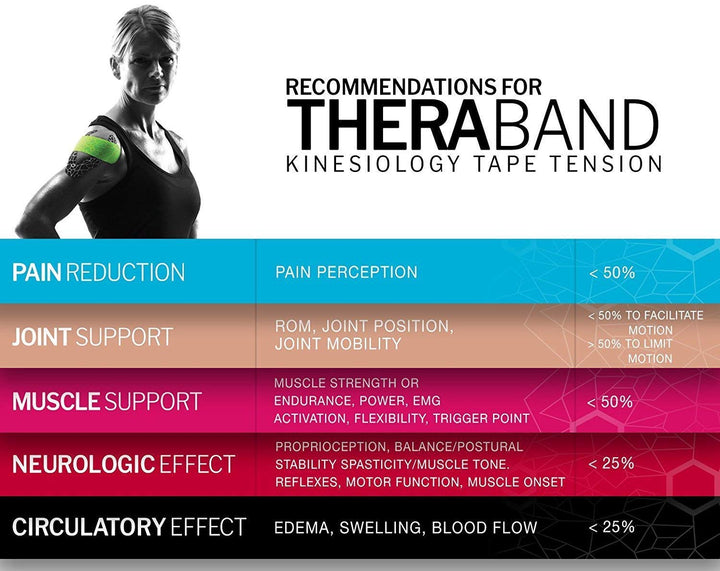 EXCELLENT JOINT SUPPORT - Theraband kinesiology tape provides discreet but reliable support for your joints during long races or training. Athletic kinesiology tape is great for working out while recovering, without limiting the range of motion. Physical therapists recommend it for keeping joints stable and for quick recovery.